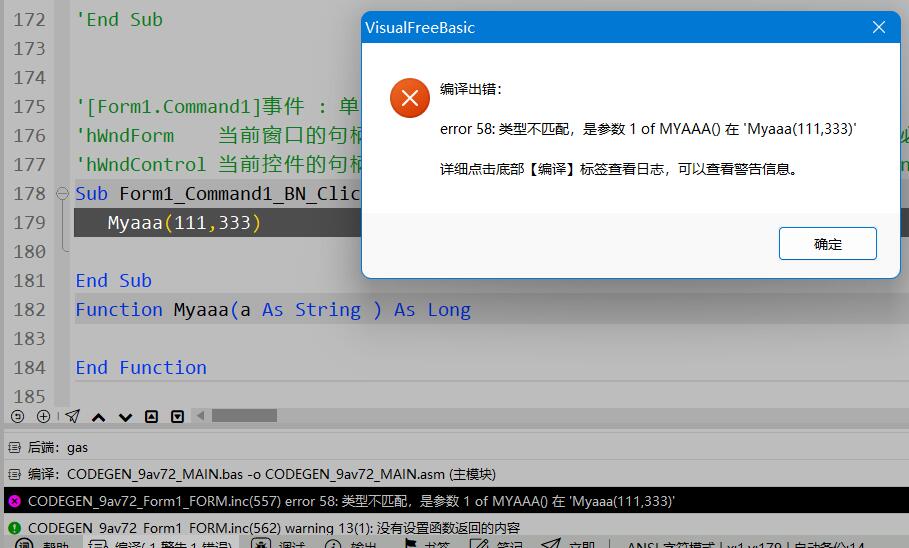 每个文字,必须先定义为某个东西,比方 变量名、函数名、等等,编译才能知道,遇到不认识的,编译器就不知道这个是干嘛的,因此先要定义后才能使用 - 错误58:类型不匹配