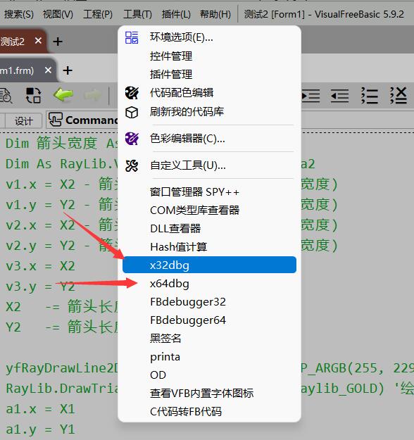 在工具菜单里,提供了汇编调试,分别为 32位和64位软件调试