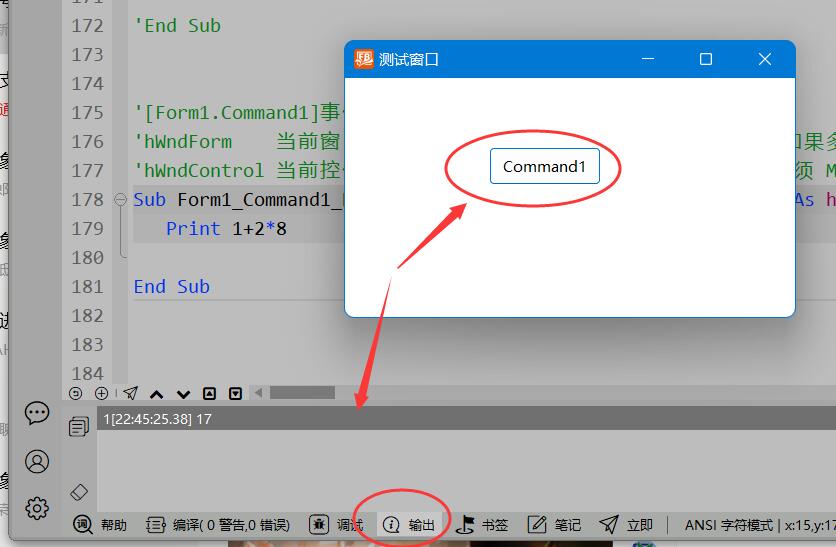 然后执行软件后,打印输出的内容会在 VisualFreeBasic 底部输出窗口中显示。