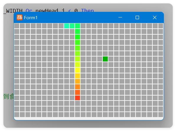 Dim As Long oldTail_i, oldTail_j, oldHead_i, oldHead_j '定义变量,存储旧蛇尾、旧蛇头坐标
