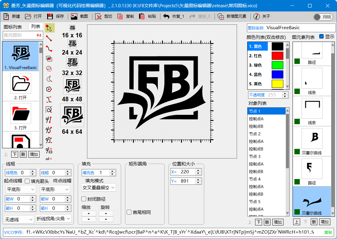 使用 VisualFreeBasic 自带的 【矢量图标编辑器】 编辑一个,里面自带了很多图标,可以复制过来即可,在 VFB里的 工具菜单里,就可以找到这个软件。